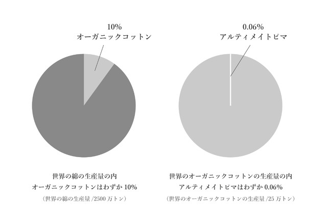 アルティメイトピマは、世界のオーガニックコットンの年間生産量の内、僅か0.006%というオーガニックコットンの中でも極めて希少な原料で、アメリカのニューメキシコ州にあるたったひつの契約農場でしか作られていません。繊維長が約39mmとオーガニックコットンの中では極めて長く、強度も兼ね備えた超長綿の一種です。