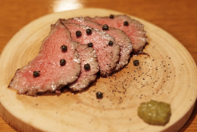 仙台牛を焼いた後に、和風の出汁に漬け込んだステーキ。