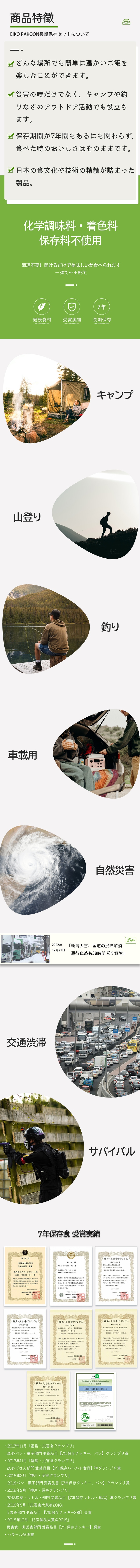 - いつでもどこでも温かいご飯が食べられる!7年の長期保存が可能な「おいしさ」!