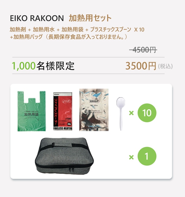 ・食品加熱剤×2個スペシャルEIKO RAKOON長期保存セット