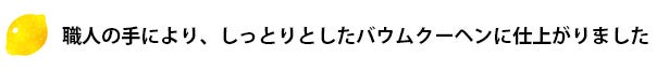 昭和元年創業以来、こだわりの地元愛媛県産の果実と、こだわりぬいた瀬戸内産の檸檬の2つのこだわりを融合させて出来上がったバウムクーヘン。