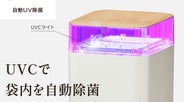 - センサーで非接触自動開閉、ゴミ袋内をUV除菌し清潔快適!