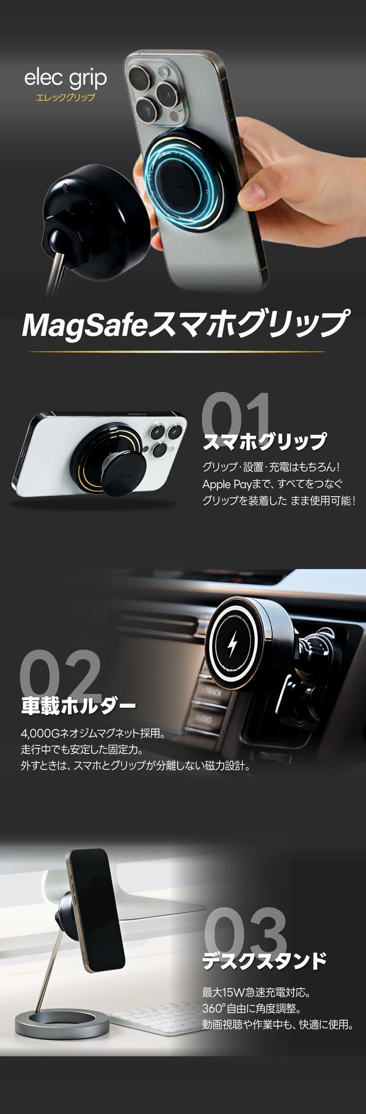 【お得セット】elec grip車載ホルダー+卓上スタンドセット