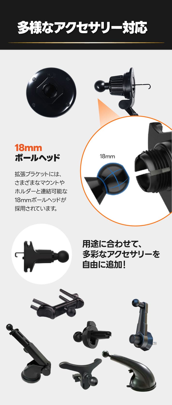 18mmの標準ボールタイプを採用し、スタンドやダッシュボードマウントなど、さまざまなアクセサリーと互換性があります。寝室やリビング、デスク、オフィスなど、さまざまなシーンで幅広く活用できます。