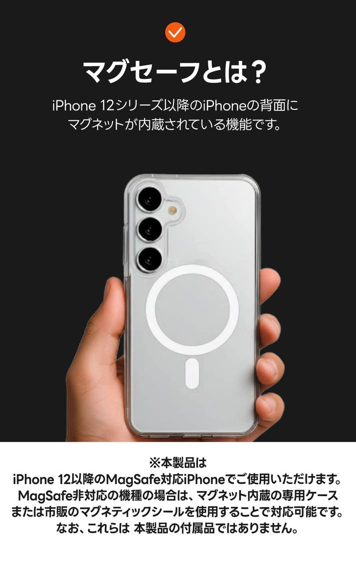 その場合は、MagSafeリングを貼り付ける、またはMagSafe対応ケースをご使用いただくことで、問題なくご利用いただけます。