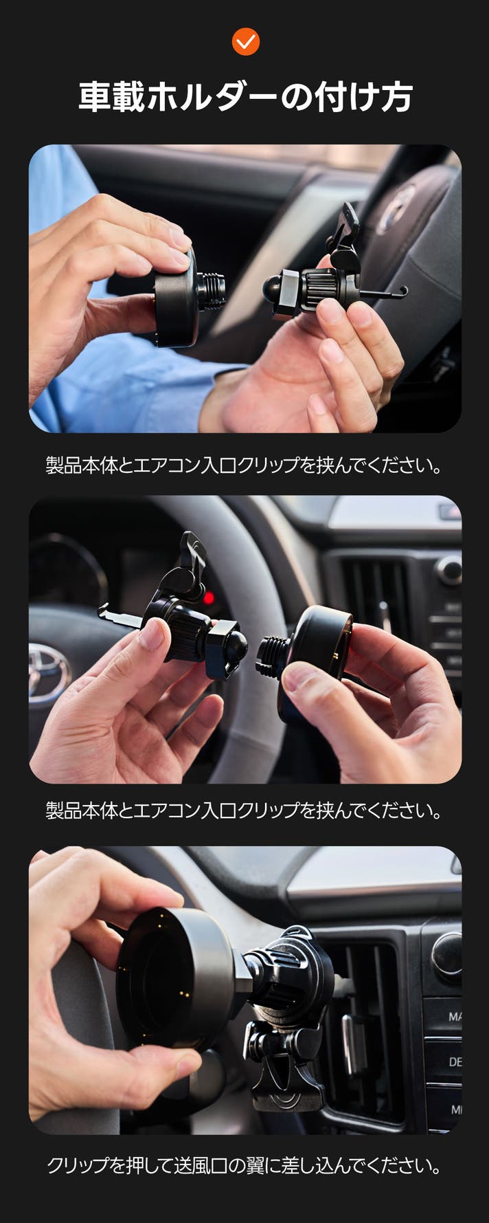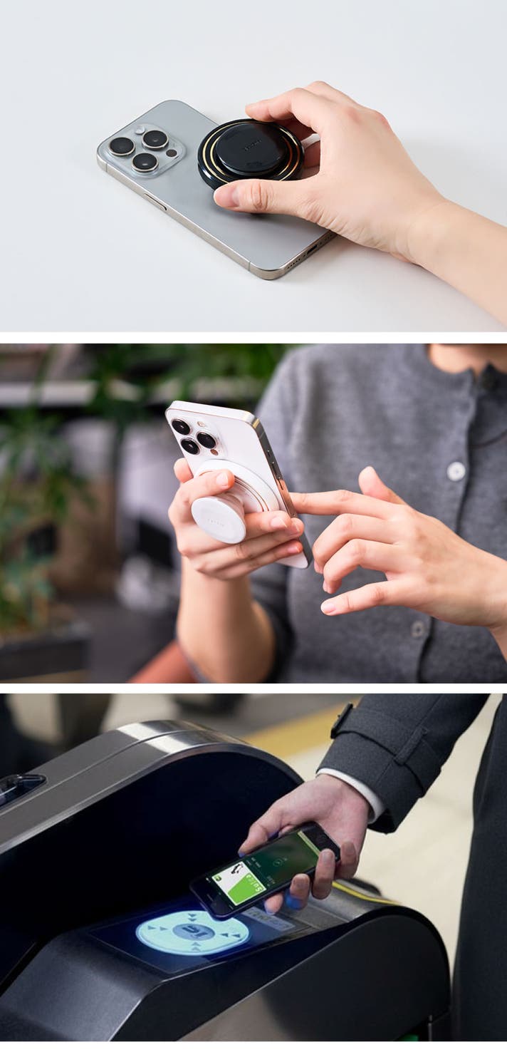 - 3in1 グリップ・設置・充電。 スリム設計で、グリップを装着したままでもスムーズに使用可能!