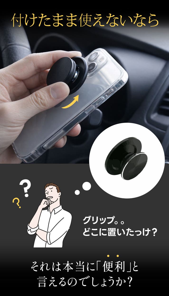 この商品を輸入しようと思った理由:スマホグリップは日常に欠かせない存在ですが、使用シーンごとに付け外しをするのは、意外と手間のかかるものでした。