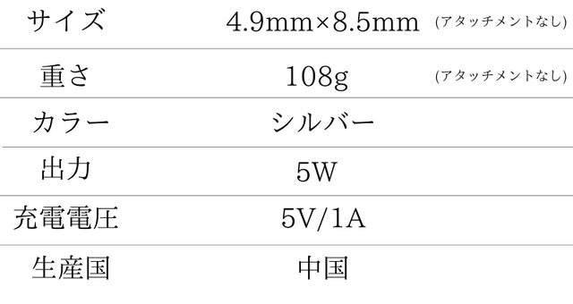 USB充電で充電ができ、USB充電器、モバイルバッテリー、パソコンなどで充電することができます。