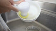 ポイント4:洗剤タンク付き、ボタンを軽く押すだけで洗剤液を出すことが可能!