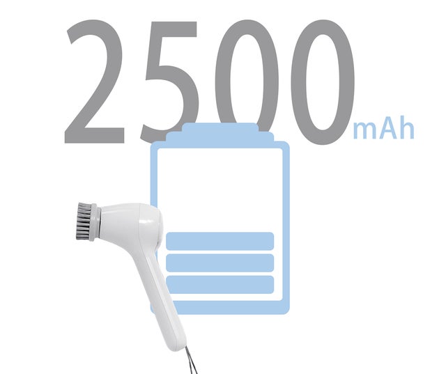 2500mAhバッテリー内蔵、1回のフル充電で最大120分連続使用可能です。