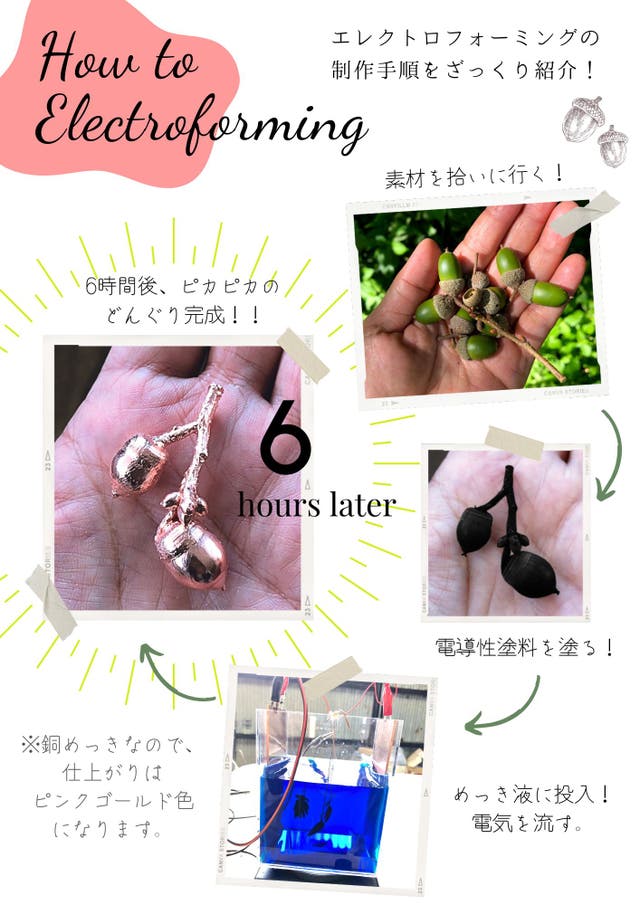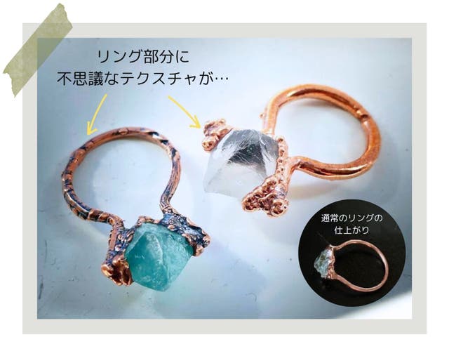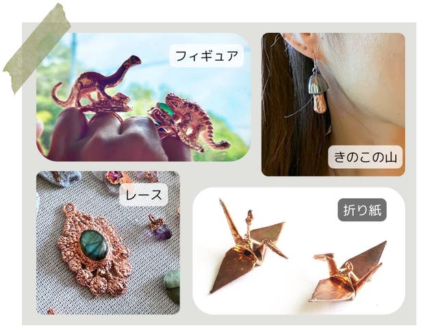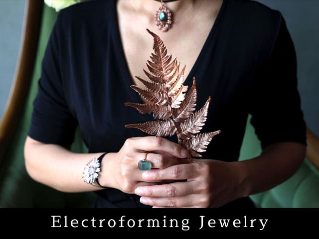 こんにちは!私たちは、銅めっきの技術を利用してアクセサリーやオブジェを作る「エレクトロフォーミング」というハンドメイド技法を教えるジュエリースクールを運営しています。