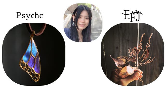 天然石×レース、松ぼっくりピアス、アジサイネックレス、原石リング、昆虫を使ったアートなネックレス、ミニ薔薇と水晶、鳥の羽のオブジェ、原石と植物のオブジェ、などなど。