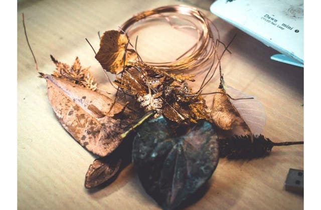 可愛い葉っぱを摘んできて金属パーツにしたり