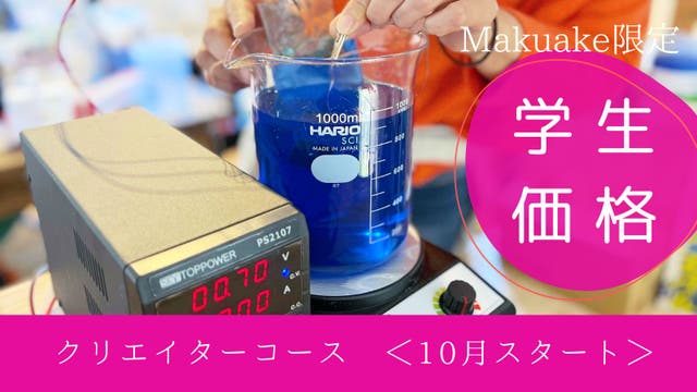 【注】エレクトロフォーミングを始めるにあたり、基本的な装置、資材は料金内に含まれておりますが、一部、ご自身でご購入いただきたい道具がございます。準備リストはこちらをご確認ください。(最大で約2万円ほど)すでにお持ちのものは購入不要です。