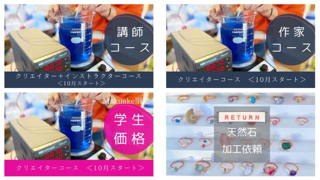 今回は、学生価格コース、天然石の加工依頼など、いままでになかったリターンをご用意しました!