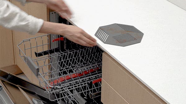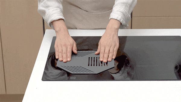 - 滑り止め加工が施されている裏面をトッププレート側にして置きます。
