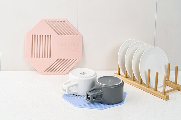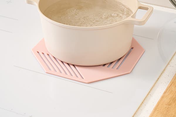 明るい色合いとおしゃれなフォルムで鍋敷きとしても活用できます。シリコン素材なので熱い鍋を置いても問題ありません。