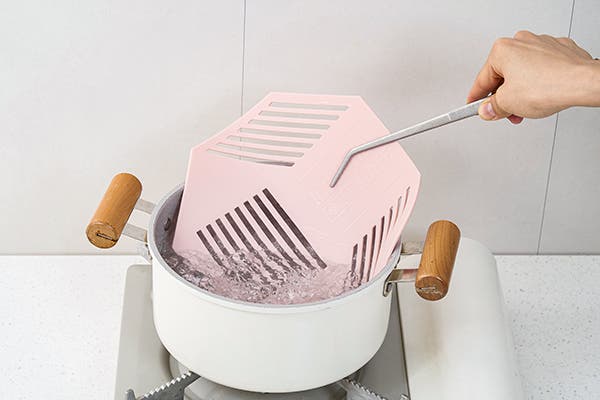 料理中に調味料が付着したり汚れたマットは手軽に洗浄でき、食器洗浄機や乾燥機にも対応しています。熱湯消毒もできるので徹底した衛生管理が可能です。