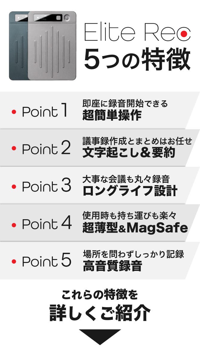 これまで培ってきた音声処理技術、骨伝導技術をはじめ、そこにAI技術まで載せた、まさに集大成といっても過言ではない商品がエリートRECとなっております。