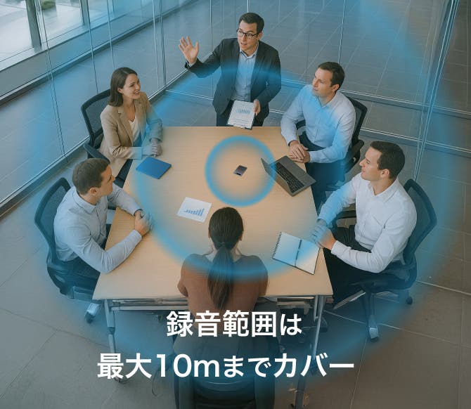 NOTEモードでは、周りの音をマイクで収音して録音します。会議やインタビューなど机の上に置いた状態などでお使いいただけます。