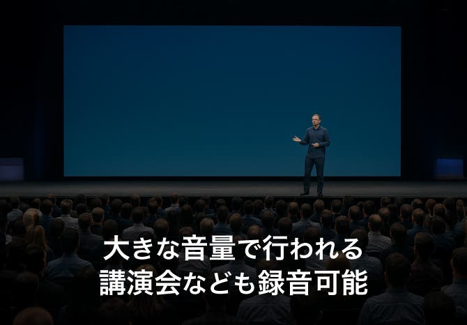 また10mを超えても、大きな音量で行われる講演会や発表会などでも使用することができるので、ビジネスシーンで大きく役に立つこと間違いありません。