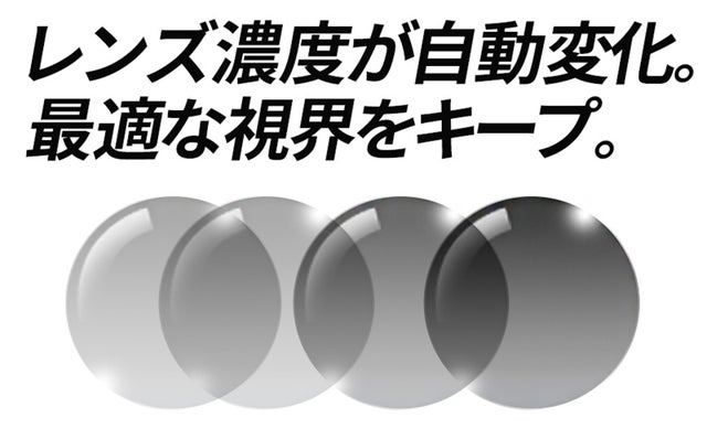調光レンズとは、紫外線の量によってレンズ濃度が変わるレンズです。一般的に使用するフィールドの明るさによってレンズの濃さが変化するので、快適な視界を常時維持できる大変便利で機能的なレンズです。