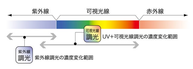 可視光線透過率/75%~20%(気温22度での紫外線照射の場合)※気温、紫外線量によって、可視光線透過率が80%~20%に変化します。
