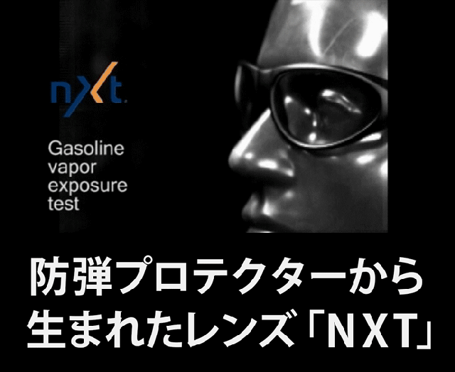 40年以上前にCRー39レンズとポリカーボネイトレンズが誕生して以来、飛躍的な進歩を見せなかったプラスチックレンズ素材。そうした中で、ポリカーボネイト・アクリルを超える軽量さ、耐衝撃性、耐久性を持つ次世代のマテリアルとして登場したのが「NXT」です。NXTポリマーは、アメリカ陸軍による超軽量防弾プロテクター開発プロジェクトから生まれた素材であり、耐衝開発を委託されたSIMULA Incは、陸軍との契約終了後に高性能レンズの大手イタリアのインテルカスト・ヨーロッパ社と提携し、「歪みや劣化の少ないハイクオリティな光学特性」「丈夫でありながら非常に優れた軽量性」という特質を最大限に活かしたサングラスレンズの開発に成功しました。
