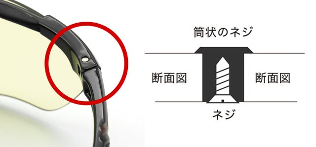 一体成型でテンプルエンドにソフトラバーを配置することにより、顔の側面に優しくフィットし、ずれも防止します。