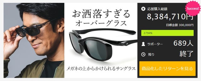 「エレッセ オーバーサングラス ES‐OS06 ブラック」 マクアケ特別仕様価格9,300円(税・送料込)のところ先着50個限定にて約15%オフの7,900円にてお届けします。