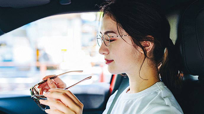 濃さが変化する調光機能がついてクリアな視界をキープ。