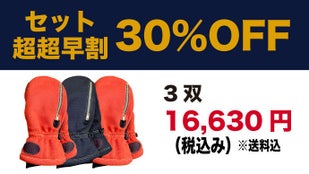 一般販売予定価格7,920円(税込)を、3双で30% OFFの16,630円(税込、送料込)で提供します。