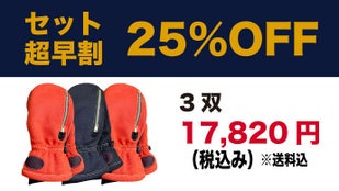 一般販売予定価格7,920円(税込)を、3双で25% OFFの17,820円(税込、送料込)で提供します。