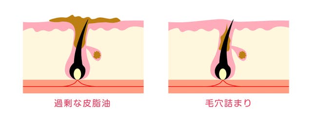 皮脂や古い角質が溜まって毛穴がニキビになります。毎日の洗顔で、肌を清潔に保ち、保湿などのスキンケアや規則正しい生活を続けていくことが大切です。