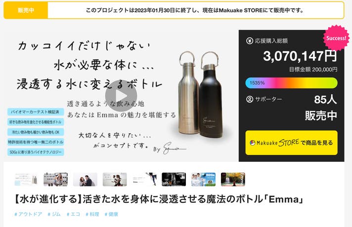 水に敏感で機能性の理解に柔軟な愛用者が増えてきたこと、JR高島屋内10階、ハンズ名古屋店のバイヤー様や統合医療に力を注ぐ船戸クリニック様からの信頼に感謝し、マクアケ様を通じて、皆様に商品をお届けできることに心から感謝いたします。
