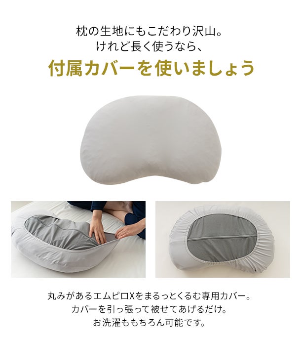エムピロXと専用カバー1枚をセットにしてお届けいたします。高さとかたさはお申し込み時にお選びください。