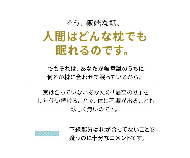 そう、人間です。私たちは枕に合わせて臨機応変に体勢を変えて眠ります。いわばベストポジションを探す一夜の旅です。