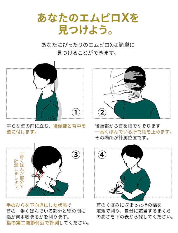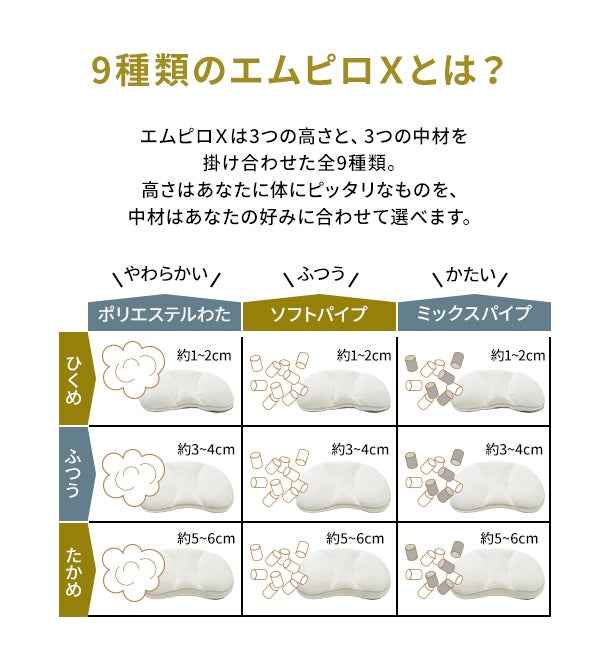 エムピロXの高さとかたさはページ内のガイドに沿ってお選びくださいませ。