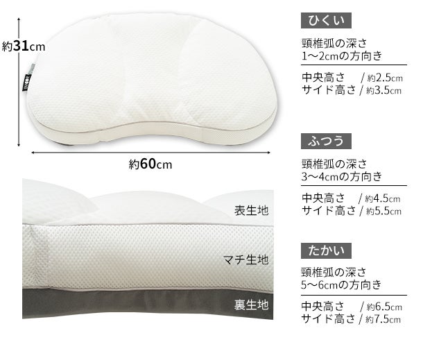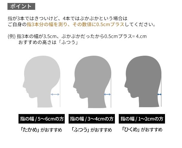 ※迷われた場合は、ひとつ高めの枕をお選びください。ご自宅で高さを下げるカスタマイズ調整が可能です。