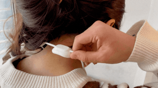 電球パッドが首元の曲線に沿ってピッタリとフィットします。コードは肌に馴染むシリコン製絶縁素材を使用しており、安定性や耐久性が期待出来ます。