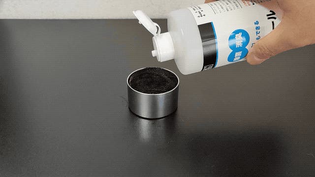 ミニ焚き火台「KUAJIE」に使う燃料は、メタノールとエタノールを組み合わせてできた「燃料用アルコール」です。