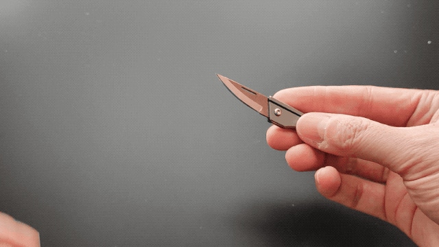 A:刃を閉じた時の全長は5cmで、開いた時の長さが8.3cmです。厚みは0.5cmでとてもコンパクトです。