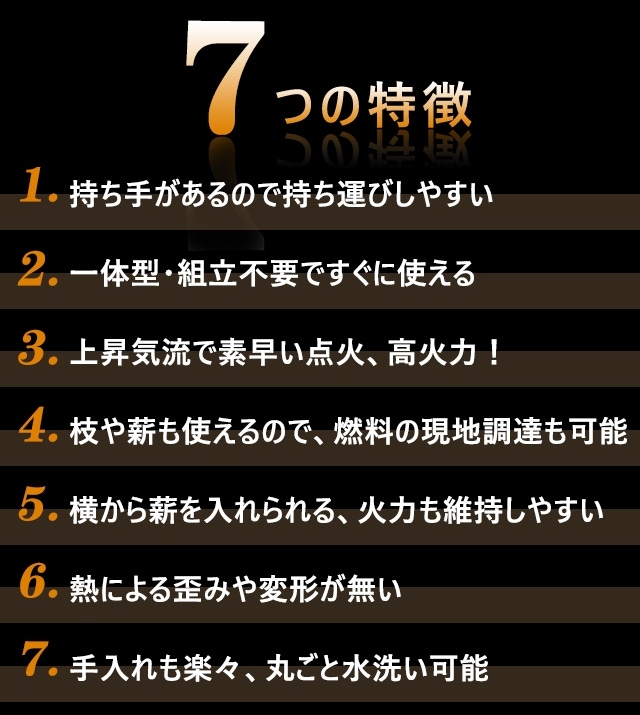 燃焼効率が良く、風を送らなくても火が大きくなるため初心者の方にもおススメです。
