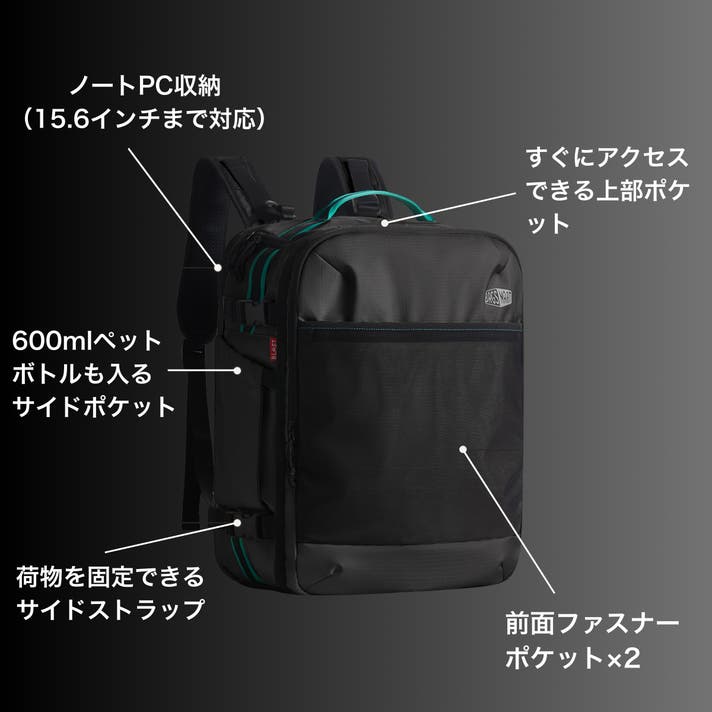 A. はい、40Lサイズで機内持ち込み対応です。1週間程度の旅行や出張なら、このバッグひとつで十分という声も多数いただいています。