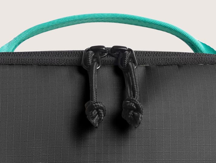 A. 生地はリップストップナイロンを使用し、さらにYKKファスナーを採用。軽量で丈夫なので、長く安心してお使いいただけます。雨にも強いPU加工も施しておりますので、突然の雨やちょっとした水濡れから荷物をしっかり守り、アウトドアから日常まで安心してご利用いただけます。