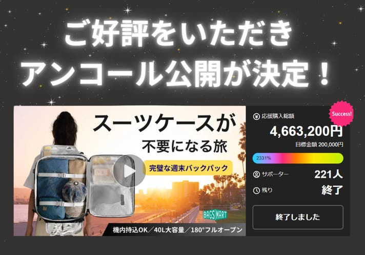アンコールプロジェクトとは、過去実施したプロジェクトが好評だった場合、プロジェクト終了後から一般販売までに再び実施するプロジェクトを言います。