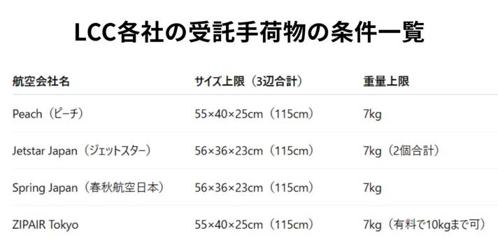 ※上記の情報は、2025年9月5日時点での内容です。航空会社によって基準が異なる場合があるため、実際の利用時には各航空会社の規定をご確認ください。