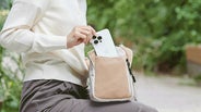 背面にあるスマホ専用のオープンポケットにスマートフォンを収納。出し入れしやすいポケット仕様でサッと手が届いて取り出せます。