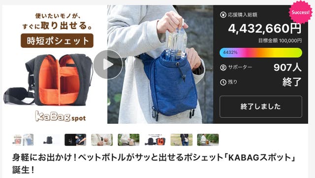 「Makuake(マクアケ)」は、実行者の想いを応援購入によって実現するアタラシイものやサービスのプラットフォームです。このページは、 ファッションカテゴリの 「【アンコール】ペットボトルがサッと出せるポシェット「KABAGスポット」誕生!」プロジェクト詳細ページです。