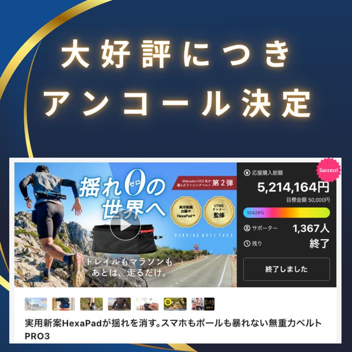 「Makuake(マクアケ)」は、実行者の想いを応援購入によって実現するアタラシイものやサービスのプラットフォームです。このページは、 プロダクトカテゴリの 「【アンコール】実用新案HexaPadが揺れを消す。スマホもポールも暴れないベルト」プロジェクト詳細ページです。